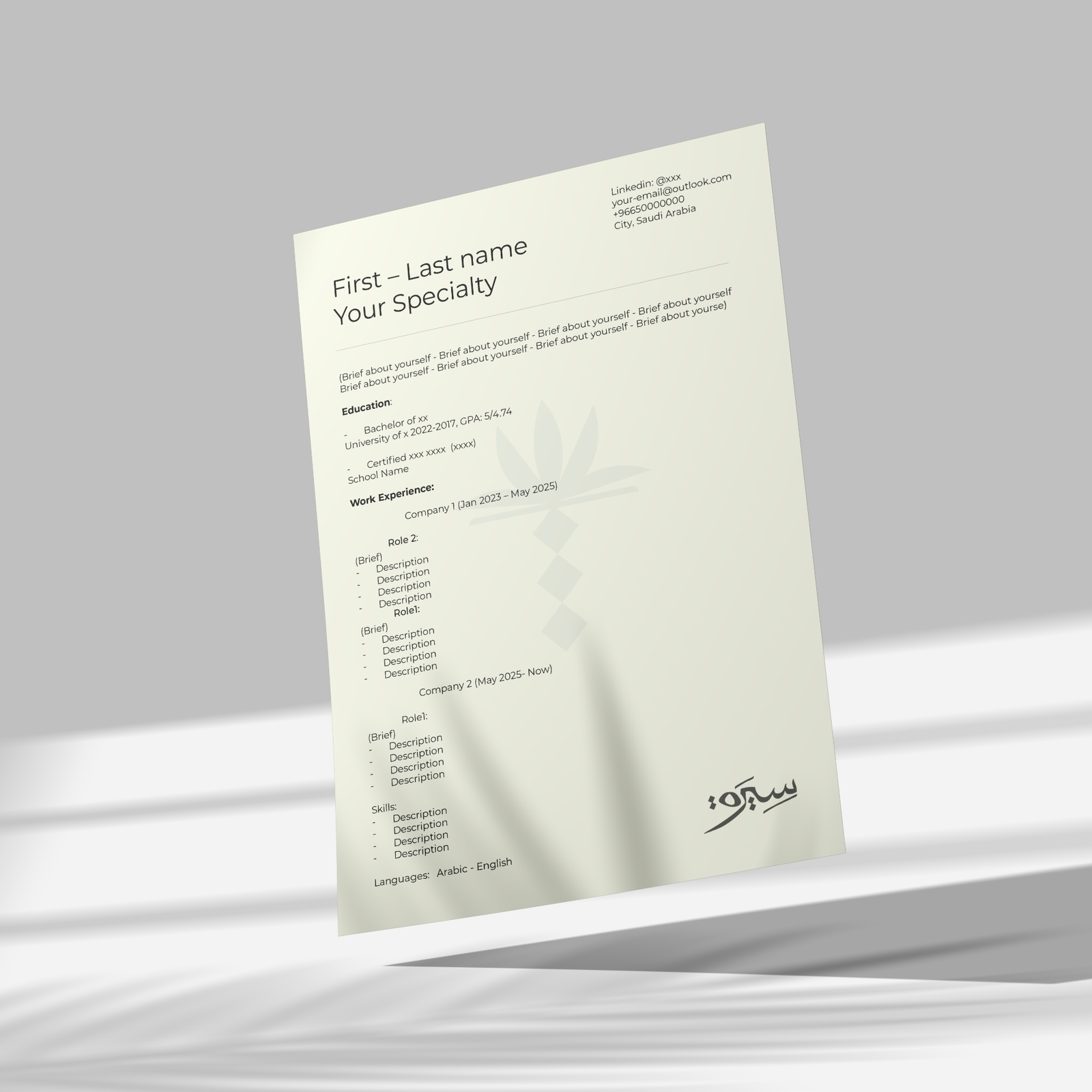 قالب احترافي يساعدك على تقديم سيرتك الذاتية بطريقة منظمة وسهلة القراءة.